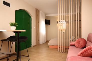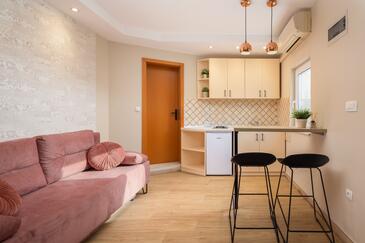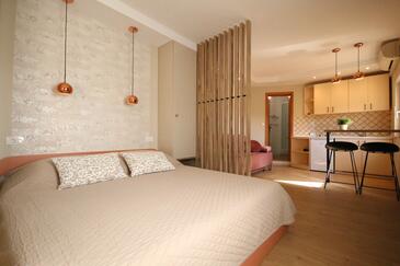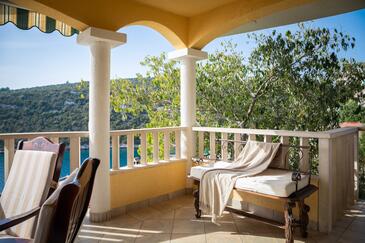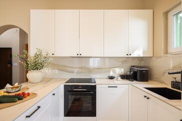 Casa può accogliere 7 ospiti. I letti sono disposti nelle camere da letto che sono 3, e nella camera di soggiorno, su 106m2. Gli ospiti hanno a disposizione il proprio terrazzo per godere nelle calde serate estive. Dalla casa si gode di una vista sul mare. Per il piacere totale e il relax c'è il barbecue privato solo per gli ospiti di quest'alloggio. Durante il soggiorno gli ospiti si possono rilassare nella piscina privata. Nell'unità di alloggio si possono portare gli animali domestici senza alcun pagamento supplementare. Arrivati nell'unità d'alloggio i clienti devono pagare un deposito (il prezzo è indicato sul sito).