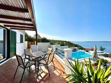 Casa può accogliere 10 ospiti. I letti sono disposti nelle camere da letto che sono 4, e nella camera di soggiorno, su 151m2. Gli ospiti hanno a disposizione il proprio terrazzo per godere nelle calde serate estive. Dalla casa si gode di una vista sul mare. Per il piacere totale e il relax c'è il barbecue privato solo per gli ospiti di quest'alloggio. Durante il soggiorno gli ospiti si possono rilassare nella piscina privata. Nell'unità di alloggio si possono portare gli animali domestici senza alcun pagamento supplementare. Le stanze dell'unità d'alloggio non sono connesse in un insieme.