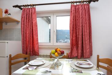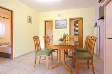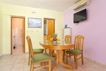 Appartamento può accogliere 5 ospiti. I letti sono disposti nelle camere da letto che sono 3, su 42m2. Gli ospiti hanno a disposizione il proprio terrazzo per godere nelle calde serate estive. Si può preparare il cibo utilizzando il barbecue comune. Nell'unità di alloggio si possono portare gli animali domestici con un pagamento supplementare.