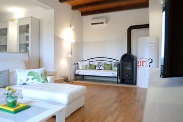 Casa può accogliere 6 ospiti. I letti sono disposti nelle camere da letto che sono 3, su 104m2. Gli ospiti hanno a disposizione il proprio terrazzo per godere nelle calde serate estive. Dalla casa si gode di una vista sul mare. Per il piacere totale e il relax c'è il barbecue privato solo per gli ospiti di quest'alloggio. Durante il soggiorno gli ospiti si possono rilassare nella piscina privata. Arrivati nell'unità d'alloggio i clienti devono pagare un deposito (il prezzo è indicato sul sito).