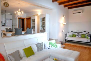 Casa può accogliere 6 ospiti. I letti sono disposti nelle camere da letto che sono 3, su 104m2. Gli ospiti hanno a disposizione il proprio terrazzo per godere nelle calde serate estive. Dalla casa si gode di una vista sul mare. Per il piacere totale e il relax c'è il barbecue privato solo per gli ospiti di quest'alloggio. Durante il soggiorno gli ospiti si possono rilassare nella piscina privata. Arrivati nell'unità d'alloggio i clienti devono pagare un deposito (il prezzo è indicato sul sito).