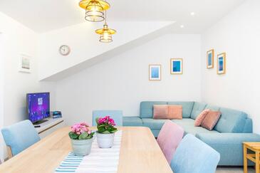 Casa può accogliere 10 ospiti. I letti sono disposti nelle camere da letto che sono 5, su 170m2. Gli ospiti hanno a disposizione il proprio terrazzo per godere nelle calde serate estive. Dalla casa si gode di una vista sul mare. Per il piacere totale e il relax c'è il barbecue privato solo per gli ospiti di quest'alloggio. Durante il soggiorno gli ospiti possono utilizzare la piscina comune.