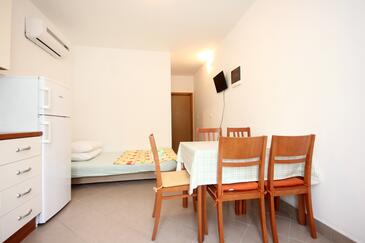 Appartamento può accogliere 5 ospiti. I letti sono disposti nelle camere da letto che sono 1, e nella sala da pranzo, su 33m2. Gli ospiti hanno a disposizione il proprio terrazzo per godere nelle calde serate estive. Dall'appartamento si gode di una vista sul mare. Si può preparare il cibo utilizzando il barbecue comune.