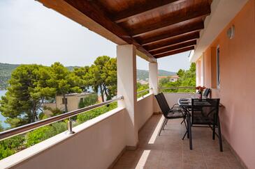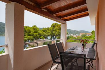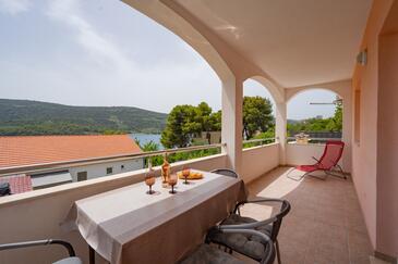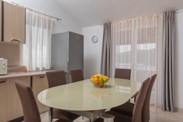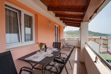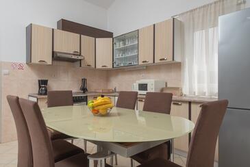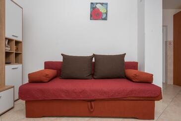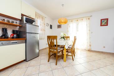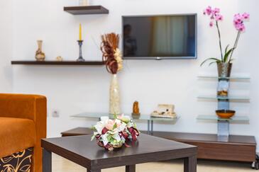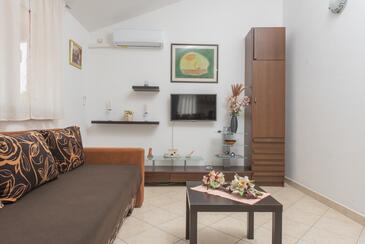 Appartamento può accogliere 6 ospiti. I letti sono disposti nelle camere da letto che sono 2, e nella camera di soggiorno, su 60m2. Gli ospiti hanno a disposizione il proprio terrazzo per godere nelle calde serate estive. Dall'appartamento si gode di una vista sul mare. Si può preparare il cibo utilizzando il barbecue comune.