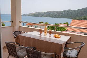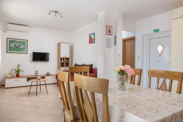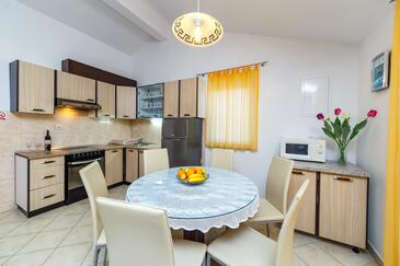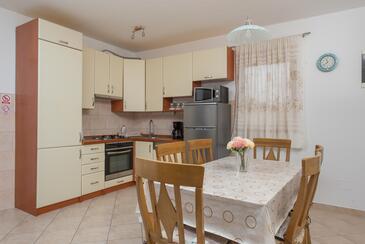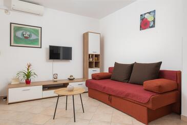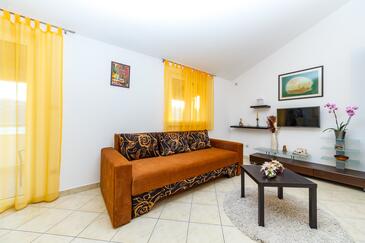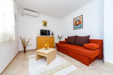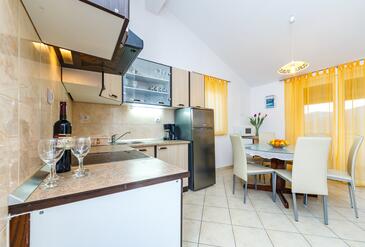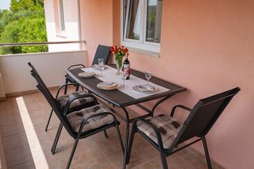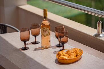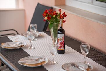 Appartamento può accogliere 6 ospiti. I letti sono disposti nelle camere da letto che sono 2, e nella camera di soggiorno, su 60m2. Gli ospiti hanno a disposizione il proprio terrazzo per godere nelle calde serate estive. Dall'appartamento si gode di una vista sul mare. Si può preparare il cibo utilizzando il barbecue comune.