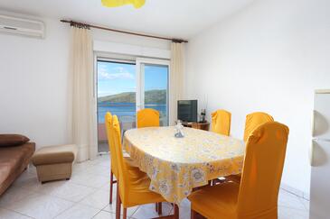 Appartamento può accogliere 6 ospiti. I letti sono disposti nelle camere da letto che sono 2, e nella camera di soggiorno, su 48m2. Gli ospiti hanno a disposizione il proprio terrazzo per godere nelle calde serate estive. Dall'appartamento si gode di una vista sul mare. Per il piacere totale e il relax c'è il barbecue privato solo per gli ospiti di quest'alloggio.