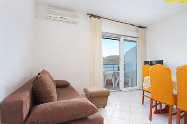 Appartamento può accogliere 6 ospiti. I letti sono disposti nelle camere da letto che sono 2, e nella camera di soggiorno, su 48m2. Gli ospiti hanno a disposizione il proprio terrazzo per godere nelle calde serate estive. Dall'appartamento si gode di una vista sul mare. Per il piacere totale e il relax c'è il barbecue privato solo per gli ospiti di quest'alloggio.