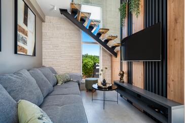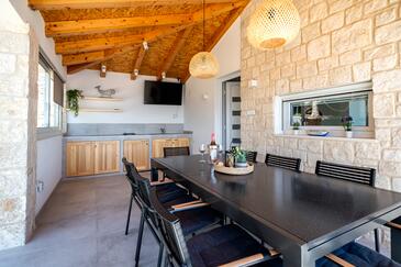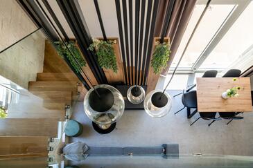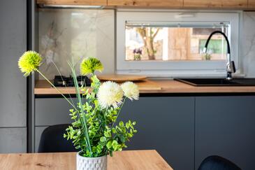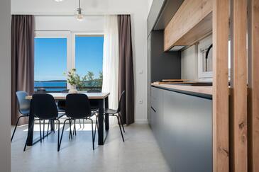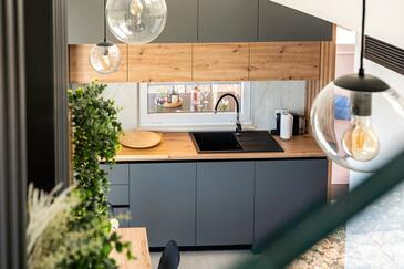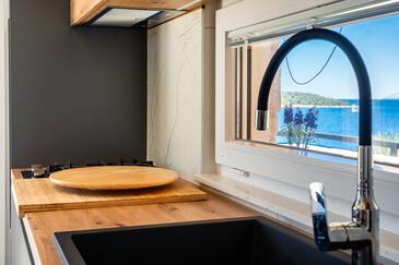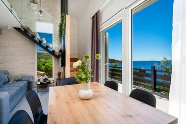 Casa può accogliere 6 ospiti. I letti sono disposti nelle camere da letto che sono 3, su 53m2. Gli ospiti hanno a disposizione il proprio terrazzo per godere nelle calde serate estive. Dalla casa si gode di una vista sul mare. Per il piacere totale e il relax c'è il barbecue privato solo per gli ospiti di quest'alloggio.