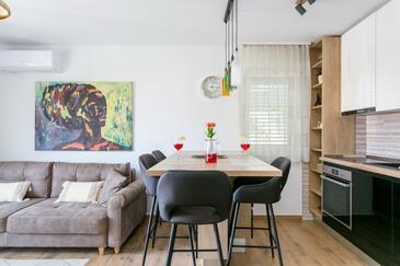 Appartamento può accogliere 4 ospiti. I letti sono disposti nelle camere da letto che sono 1, e nella camera di soggiorno, su 36m2. Gli ospiti hanno a disposizione il proprio balcone per godere delle calde serate estive. Dall'appartamento si gode di una vista sul mare. Si può preparare il cibo utilizzando il barbecue comune. L'unità di alloggio prenotata utilizza il terazzo in comune.