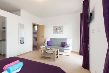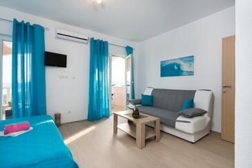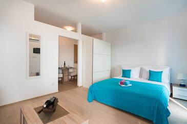 Monolocale può accogliere 2 ospiti. I letti sono disposti nelle camere da letto che sono 1, su 26m2. Gli ospiti hanno a disposizione il proprio terrazzo per godere nelle calde serate estive. Dal monolocale si gode di una vista sul mare. Si può preparare il cibo utilizzando il barbecue comune.