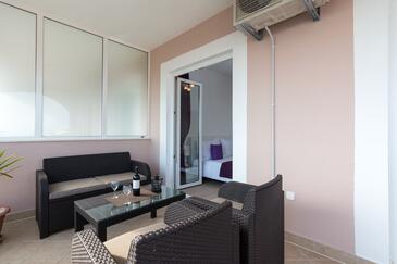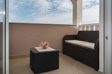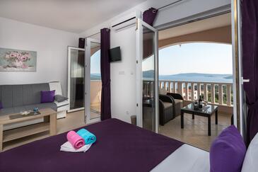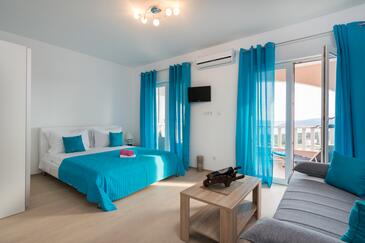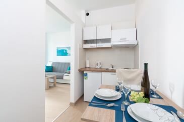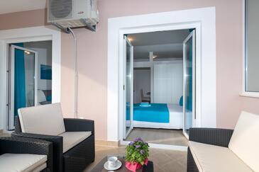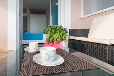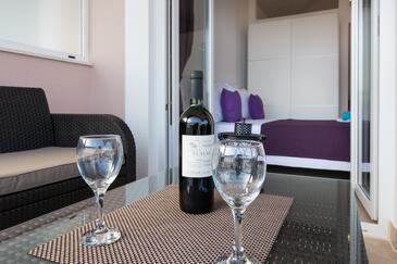 Monolocale può accogliere 2 ospiti. I letti sono disposti nelle camere da letto che sono 1, su 26m2. Gli ospiti hanno a disposizione il proprio terrazzo per godere nelle calde serate estive. Dal monolocale si gode di una vista sul mare. Si può preparare il cibo utilizzando il barbecue comune.