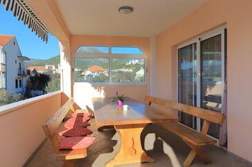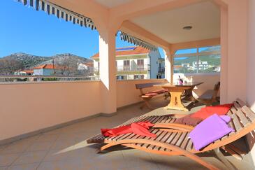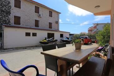 Appartamento può accogliere 8 ospiti. I letti sono disposti nelle camere da letto che sono 3, su 73m2. Gli ospiti hanno a disposizione il proprio terrazzo per godere nelle calde serate estive. Dall'appartamento si gode di una vista sul mare. Si può preparare il cibo utilizzando il barbecue comune. Nell'unità di alloggio si possono portare gli animali domestici senza alcun pagamento supplementare.
