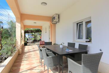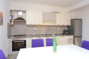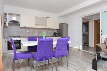 Appartamento può accogliere 8 ospiti. I letti sono disposti nelle camere da letto che sono 3, su 73m2. Gli ospiti hanno a disposizione il proprio terrazzo per godere nelle calde serate estive. Dall'appartamento si gode di una vista sul mare. Si può preparare il cibo utilizzando il barbecue comune. Nell'unità di alloggio si possono portare gli animali domestici senza alcun pagamento supplementare.