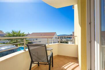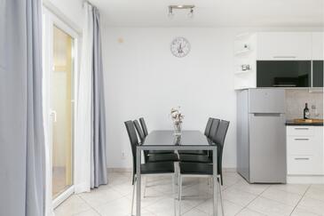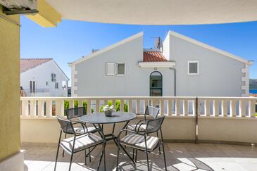 Appartamento può accogliere 5 ospiti. I letti sono disposti nelle camere da letto che sono 2, e nella camera di soggiorno, su 55m2. Gli ospiti hanno a disposizione il proprio terrazzo per godere nelle calde serate estive. Dall'appartamento si gode di una vista sul mare. Si può preparare il cibo utilizzando il barbecue comune. Durante il soggiorno gli ospiti possono utilizzare la piscina comune.