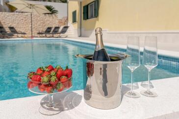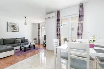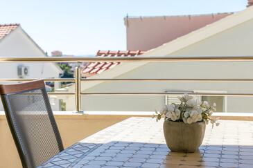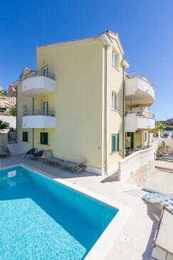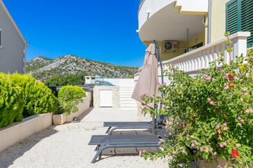 Appartamento può accogliere 5 ospiti. I letti sono disposti nelle camere da letto che sono 2, e nella camera di soggiorno, su 55m2. Gli ospiti hanno a disposizione il proprio terrazzo per godere nelle calde serate estive. Dall'appartamento si gode di una vista sul mare. Si può preparare il cibo utilizzando il barbecue comune. Durante il soggiorno gli ospiti possono utilizzare la piscina comune.