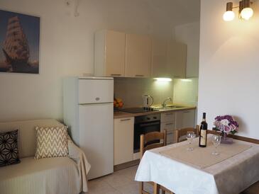 Appartamento può accogliere 4 ospiti. I letti sono disposti nelle camere da letto che sono 1, e nella camera di soggiorno, su 32m2. Gli ospiti hanno a disposizione il proprio balcone per godere delle calde serate estive. Dall'appartamento si gode di una vista sul mare. Si può preparare il cibo utilizzando il barbecue comune.