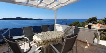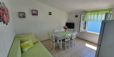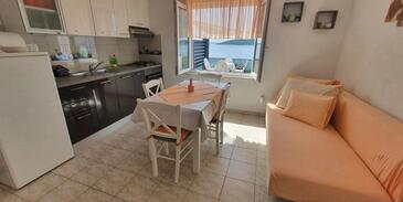 Appartamento può accogliere 5 ospiti. I letti sono disposti nelle camere da letto che sono 2, e nella sala da pranzo, su 45m2. Gli ospiti hanno a disposizione il proprio terrazzo per godere nelle calde serate estive. Dall'appartamento si gode di una vista sul mare. Si può preparare il cibo utilizzando il barbecue comune.