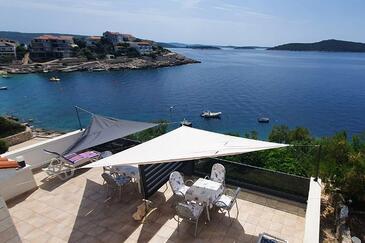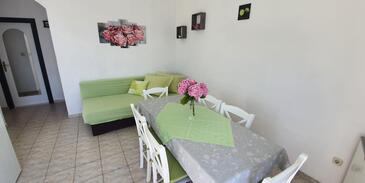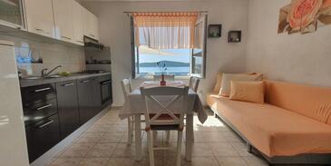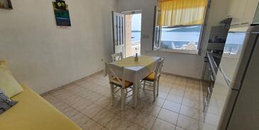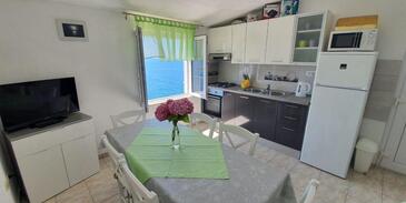 Appartamento può accogliere 5 ospiti. I letti sono disposti nelle camere da letto che sono 2, e nella sala da pranzo, su 45m2. Gli ospiti hanno a disposizione il proprio terrazzo per godere nelle calde serate estive. Dall'appartamento si gode di una vista sul mare. Si può preparare il cibo utilizzando il barbecue comune.