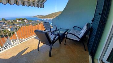 Appartamento può accogliere 5 ospiti. I letti sono disposti nelle camere da letto che sono 3, su 69m2. Gli ospiti hanno a disposizione il proprio terrazzo per godere nelle calde serate estive. Dall'appartamento si gode di una vista sul mare. Si può preparare il cibo utilizzando il barbecue comune.