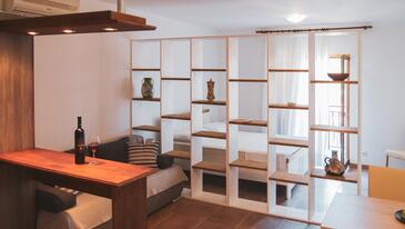 Appartamento può accogliere 5 ospiti. I letti sono disposti nelle camere da letto che sono 1, e nella camera di soggiorno, su 46m2. Gli ospiti hanno a disposizione il proprio balcone per godere delle calde serate estive. Dall'appartamento si gode di una vista sul mare. Si può preparare il cibo utilizzando il barbecue comune. L'unità di alloggio prenotata utilizza il terazzo in comune.