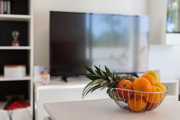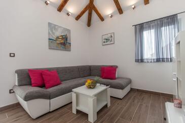 Casa può accogliere 6 ospiti. I letti sono disposti nelle camere da letto che sono 2, e nella camera di soggiorno, su 52m2. Gli ospiti hanno a disposizione il proprio terrazzo per godere nelle calde serate estive. Dalla casa si gode di una vista sul mare. Per il piacere totale e il relax c'è il barbecue privato solo per gli ospiti di quest'alloggio. Durante il soggiorno gli ospiti si possono rilassare nella piscina privata.