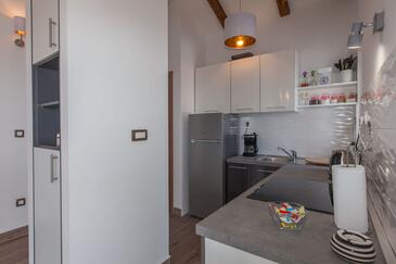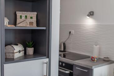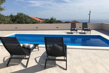 Casa può accogliere 6 ospiti. I letti sono disposti nelle camere da letto che sono 2, e nella camera di soggiorno, su 52m2. Gli ospiti hanno a disposizione il proprio terrazzo per godere nelle calde serate estive. Dalla casa si gode di una vista sul mare. Per il piacere totale e il relax c'è il barbecue privato solo per gli ospiti di quest'alloggio. Durante il soggiorno gli ospiti si possono rilassare nella piscina privata.