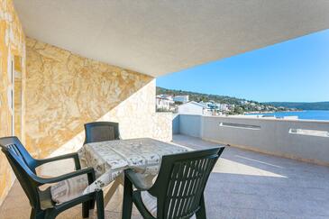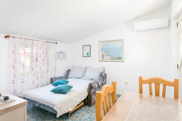 Appartamento può accogliere 4 ospiti. I letti sono disposti nelle camere da letto che sono 1, e nella camera di soggiorno, su 27m2. Gli ospiti hanno a disposizione il proprio terrazzo per godere nelle calde serate estive. Dall'appartamento si gode di una vista sul mare. Si può preparare il cibo utilizzando il barbecue comune.
