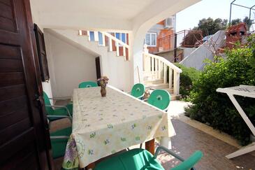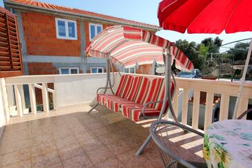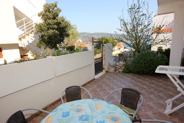Appartamento può accogliere 5 ospiti. I letti sono disposti nelle camere da letto che sono 2, e nella sala da pranzo, su 43m2. Gli ospiti hanno a disposizione il proprio terrazzo per godere nelle calde serate estive. Dall'appartamento si gode di una vista sul mare. Si può preparare il cibo utilizzando il barbecue comune.