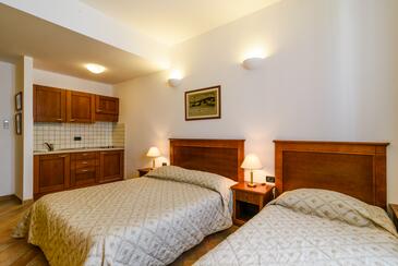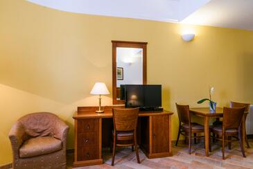 Appartamento può accogliere 4 ospiti. I letti sono disposti nelle camere da letto che sono 1, e nella camera di soggiorno, su 37m2. Gli ospiti hanno a disposizione il proprio terrazzo per godere nelle calde serate estive. Si può preparare il cibo utilizzando il barbecue comune. Durante il soggiorno gli ospiti possono utilizzare la piscina comune.