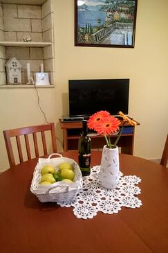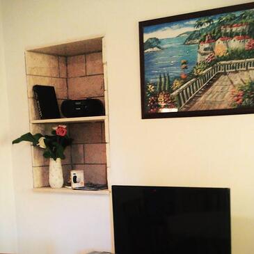 Casa può accogliere 5 ospiti. I letti sono disposti nelle camere da letto che sono 2, e nella camera di soggiorno, su 50m2. Gli ospiti hanno a disposizione il proprio terrazzo per godere nelle calde serate estive. Dalla casa si gode di una vista sul mare. Per il piacere totale e il relax c'è il barbecue privato solo per gli ospiti di quest'alloggio.