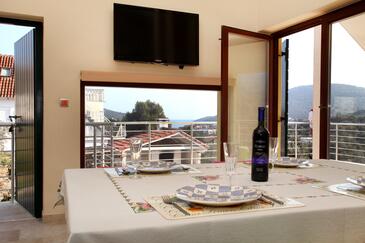 Casa può accogliere 7 ospiti. I letti sono disposti nelle camere da letto che sono 3, e nella camera di soggiorno, su 83m2. Gli ospiti hanno a disposizione il proprio terrazzo per godere nelle calde serate estive. Dalla casa si gode di una vista sul mare. Per il piacere totale e il relax c'è il barbecue privato solo per gli ospiti di quest'alloggio. Durante il soggiorno gli ospiti si possono rilassare nella piscina privata. Nell'unità di alloggio si possono portare gli animali domestici senza alcun pagamento supplementare. Le stanze dell'unità d'alloggio non sono connesse in un insieme.