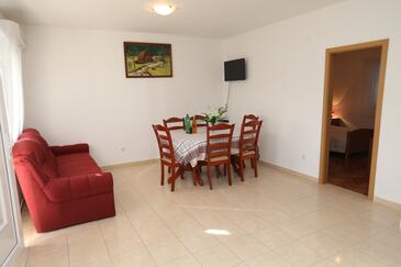 Appartamento può accogliere 7 ospiti. I letti sono disposti nelle camere da letto che sono 2, e nella camera di soggiorno, su 70m2. Gli ospiti hanno a disposizione il proprio terrazzo per godere nelle calde serate estive. Si può preparare il cibo utilizzando il barbecue comune. Nell'unità di alloggio si possono portare gli animali domestici con un pagamento supplementare.