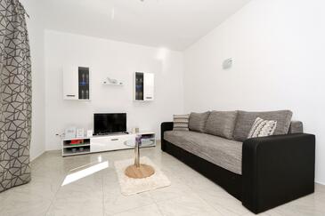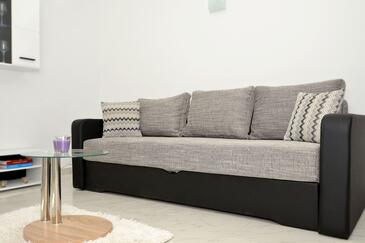 Casa può accogliere 5 ospiti. I letti sono disposti nelle camere da letto che sono 2, e nella camera di soggiorno, su 66m2. Gli ospiti hanno a disposizione il proprio terrazzo per godere nelle calde serate estive. Dalla casa si gode di una vista sul mare. Per il piacere totale e il relax c'è il barbecue privato solo per gli ospiti di quest'alloggio.