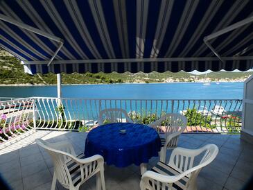 Appartamento può accogliere 4 ospiti. I letti sono disposti nelle camere da letto che sono 2, su 46m2. Gli ospiti hanno a disposizione il proprio terrazzo per godere nelle calde serate estive. Dall'appartamento si gode di una vista sul mare. Si può preparare il cibo utilizzando il barbecue comune.