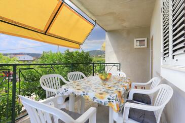 Appartamento può accogliere 6 ospiti. I letti sono disposti nelle camere da letto che sono 2, su 65m2. Gli ospiti hanno a disposizione il proprio terrazzo per godere nelle calde serate estive. Dall'appartamento si gode di una vista sul mare. Si può preparare il cibo utilizzando il barbecue comune.