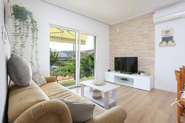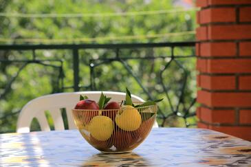 Appartamento può accogliere 6 ospiti. I letti sono disposti nelle camere da letto che sono 2, su 65m2. Gli ospiti hanno a disposizione il proprio terrazzo per godere nelle calde serate estive. Dall'appartamento si gode di una vista sul mare. Si può preparare il cibo utilizzando il barbecue comune.