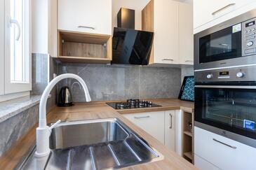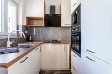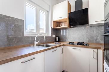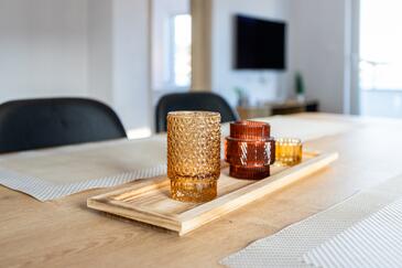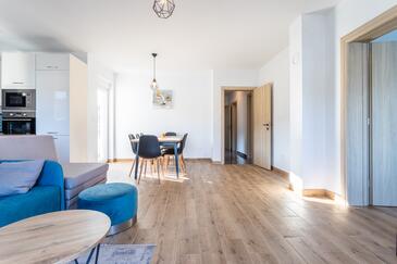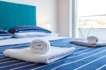 Appartamento può accogliere 8 ospiti. I letti sono disposti nelle camere da letto che sono 3, e nella camera di soggiorno, su 104m2. Gli ospiti hanno a disposizione il proprio balcone per godere delle calde serate estive. Dall'appartamento si gode di una vista sul mare.