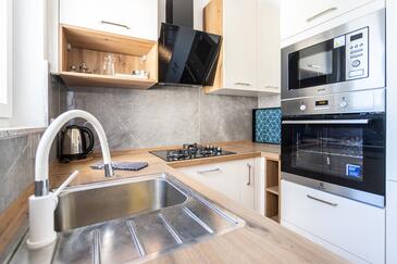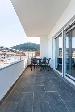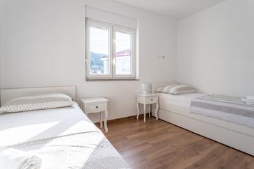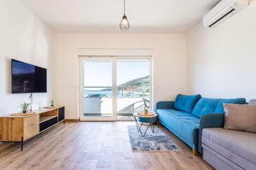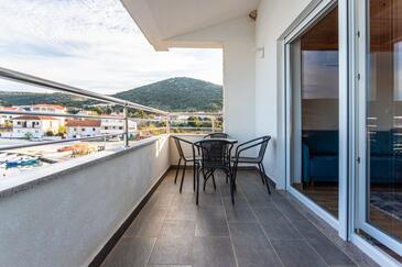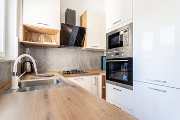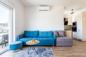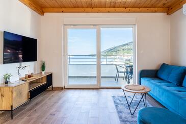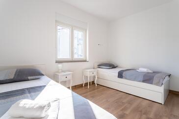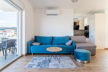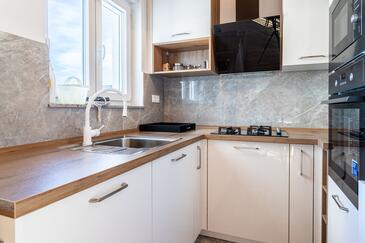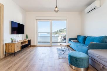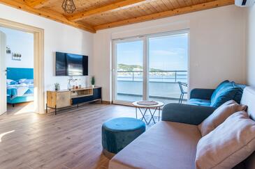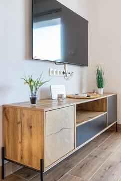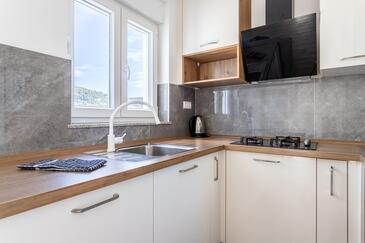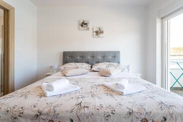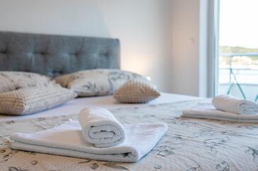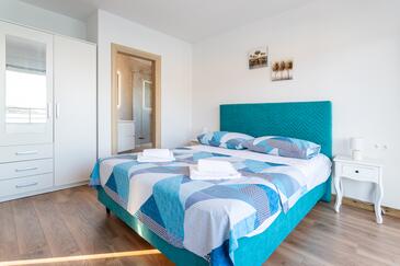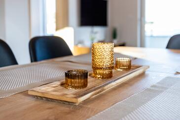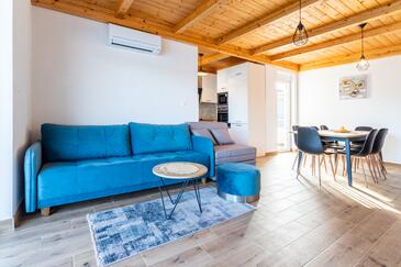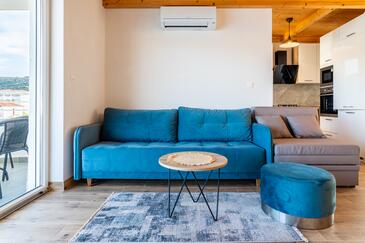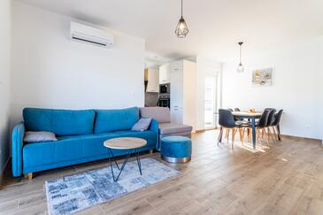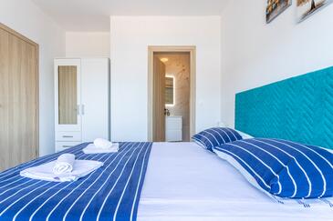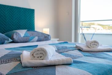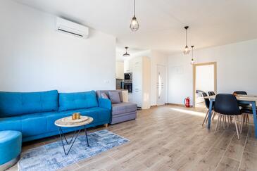 Appartamento può accogliere 8 ospiti. I letti sono disposti nelle camere da letto che sono 3, e nella camera di soggiorno, su 104m2. Gli ospiti hanno a disposizione il proprio balcone per godere delle calde serate estive. Dall'appartamento si gode di una vista sul mare.