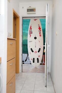 Appartamento può accogliere 5 ospiti. I letti sono disposti nelle camere da letto che sono 2, su 34m2. Gli ospiti hanno a disposizione il proprio terrazzo per godere nelle calde serate estive. Dall'appartamento si gode di una vista sul mare. Si può preparare il cibo utilizzando il barbecue comune.