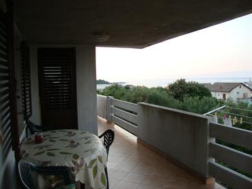 Appartamento può accogliere 6 ospiti. I letti sono disposti nelle camere da letto che sono 3, su 92m2. Gli ospiti hanno a disposizione il proprio terrazzo per godere nelle calde serate estive. Dall'appartamento si gode di una vista sul mare. Si può preparare il cibo utilizzando il barbecue comune.