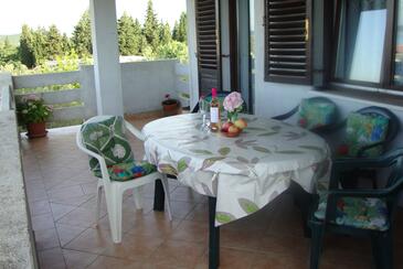 Appartamento può accogliere 6 ospiti. I letti sono disposti nelle camere da letto che sono 3, su 92m2. Gli ospiti hanno a disposizione il proprio terrazzo per godere nelle calde serate estive. Dall'appartamento si gode di una vista sul mare. Si può preparare il cibo utilizzando il barbecue comune.