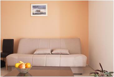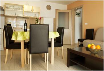 Appartamento può accogliere 6 ospiti. I letti sono disposti nelle camere da letto che sono 2, e nella camera di soggiorno, su 44m2. Gli ospiti hanno a disposizione il proprio terrazzo per godere nelle calde serate estive. Dall'appartamento si gode di una vista sul mare. Si può preparare il cibo utilizzando il barbecue comune. Arrivati nell'unità d'alloggio i clienti devono pagare un deposito (il prezzo è indicato sul sito).
