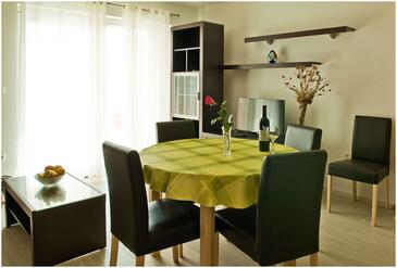 Appartamento può accogliere 6 ospiti. I letti sono disposti nelle camere da letto che sono 2, e nella camera di soggiorno, su 44m2. Gli ospiti hanno a disposizione il proprio terrazzo per godere nelle calde serate estive. Dall'appartamento si gode di una vista sul mare. Si può preparare il cibo utilizzando il barbecue comune. Arrivati nell'unità d'alloggio i clienti devono pagare un deposito (il prezzo è indicato sul sito).