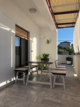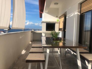 Appartamento può accogliere 6 ospiti. I letti sono disposti nelle camere da letto che sono 3, su 96m2. Gli ospiti hanno a disposizione il proprio terrazzo per godere nelle calde serate estive. Dall'appartamento si gode di una vista sul mare. Per il piacere totale e il relax c'è il barbecue privato solo per gli ospiti di quest'alloggio.