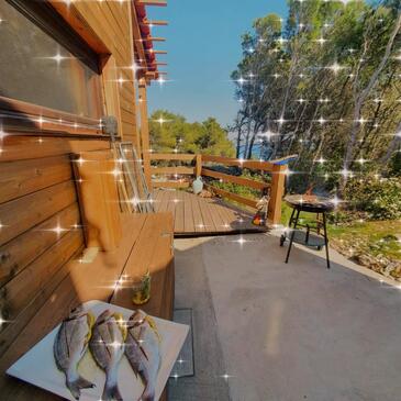 Casa può accogliere 3 ospiti. I letti sono disposti nelle camere da letto che sono 1, e nella camera di soggiorno, su 42m2. Gli ospiti hanno a disposizione il proprio terrazzo per godere nelle calde serate estive. Dalla casa si gode di una vista sul mare. Si può preparare il cibo utilizzando il barbecue comune. Nell'unità di alloggio si possono portare gli animali domestici senza alcun pagamento supplementare.