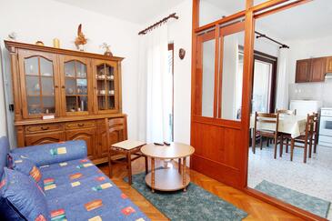 Appartamento può accogliere 5 ospiti. I letti sono disposti nelle camere da letto che sono 2, e nella camera di soggiorno, su 47m2. Gli ospiti hanno a disposizione il proprio terrazzo per godere nelle calde serate estive. Dall'appartamento si gode di una vista sul mare. Per il piacere totale e il relax c'è il barbecue privato solo per gli ospiti di quest'alloggio.