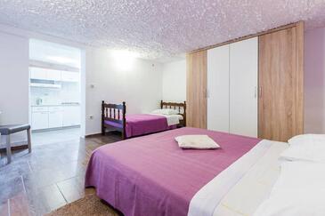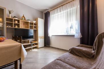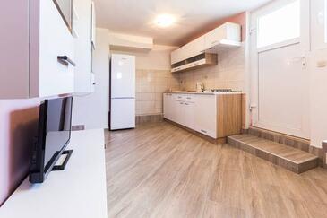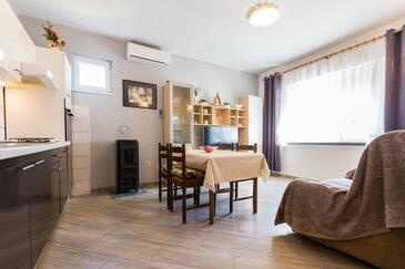 Appartamento può accogliere 6 ospiti. I letti sono disposti nelle camere da letto che sono 2, e nella camera di soggiorno, su 68m2. Gli ospiti hanno a disposizione il proprio terrazzo per godere nelle calde serate estive. Dall'appartamento si gode di una vista sul mare. Si può preparare il cibo utilizzando il barbecue comune.