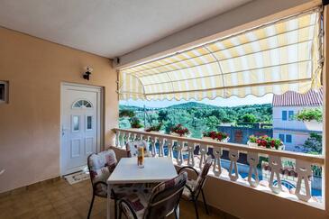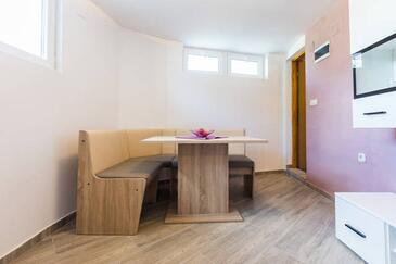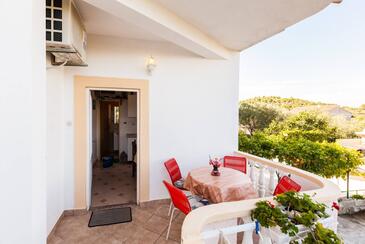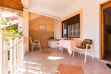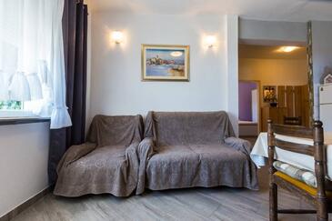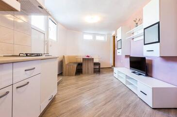 Appartamento può accogliere 6 ospiti. I letti sono disposti nelle camere da letto che sono 2, e nella camera di soggiorno, su 68m2. Gli ospiti hanno a disposizione il proprio terrazzo per godere nelle calde serate estive. Dall'appartamento si gode di una vista sul mare. Si può preparare il cibo utilizzando il barbecue comune.