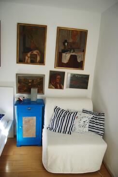 Casa può accogliere 6 ospiti. I letti sono disposti nelle camere da letto che sono 3, su 96m2. Gli ospiti hanno a disposizione il proprio terrazzo per godere nelle calde serate estive. Dalla casa si gode di una vista sul mare. Per il piacere totale e il relax c'è il barbecue privato solo per gli ospiti di quest'alloggio. Nell'unità di alloggio si possono portare gli animali domestici con un pagamento supplementare. Arrivati nell'unità d'alloggio i clienti devono pagare un deposito (il prezzo è indicato sul sito).