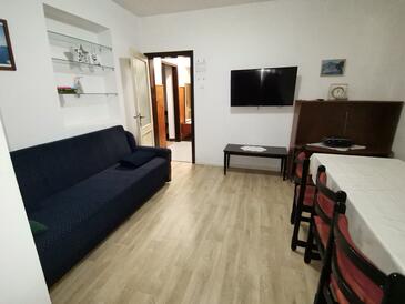 Appartamento può accogliere 5 ospiti. I letti sono disposti nelle camere da letto che sono 2, su 62m2. Gli ospiti hanno a disposizione il proprio terrazzo per godere nelle calde serate estive. Dall'appartamento si gode di una vista sul mare. Si può preparare il cibo utilizzando il barbecue comune.